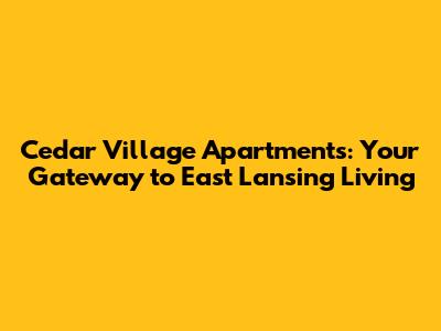 Hey everyone, are you on the hunt for an awesome place to live in East Lansing, Michigan? Well, Cedar Village Apartments might just be your perfect match! Finding a great apartment can feel like a real mission, especially when you're looking in a popular college town like East Lansing. But don't worry, we're going to dive deep into what makes Cedar Village Apartments such a desirable spot. We'll explore everything from the location and amenities to what current residents are saying. So, grab your coffee, and let's get started! The goal is to give you all the insider info so you can decide if Cedar Village Apartments is the right place for you to call home. Let's see if this place is the right fit for you.