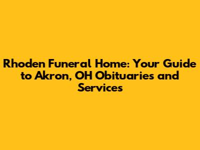 Hey there, folks! Navigating the loss of a loved one is undoubtedly one of life's most challenging experiences. If you're here, chances are you're looking for information about Rhoden Funeral Home in Akron, Ohio, specifically focusing on obituaries and the services they offer. You've come to the right place! This guide is designed to help you through this difficult time by providing a comprehensive overview of Rhoden Funeral Home, their services, and how to access obituaries. We'll cover everything from understanding the importance of obituaries to details on the funeral home's facilities and the types of services they provide. Consider this your go-to resource for everything related to Rhoden Funeral Home in Akron. Let's dive in and explore how Rhoden Funeral Home can support you and your family during this sensitive period. This guide aims to provide clarity and support, ensuring you have all the information needed to make informed decisions with empathy and understanding.