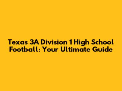 Hey football fans! Are you ready to dive deep into the exciting world of Texas 3A Division 1 high school football? This is where the competition gets fierce, the rivalries burn bright, and the Friday night lights shine the strongest. This article is your one-stop shop for everything you need to know about this thrilling division. We're talking teams, rankings, key players, and the road to the championship. So, buckle up, grab your favorite game-day snack, and let's get started!