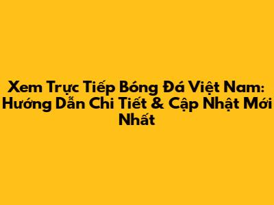 Xem Trực Tiếp Bóng Đá Việt Nam: Lịch Thi Đấu & Cập Nhật Mới Nhất
